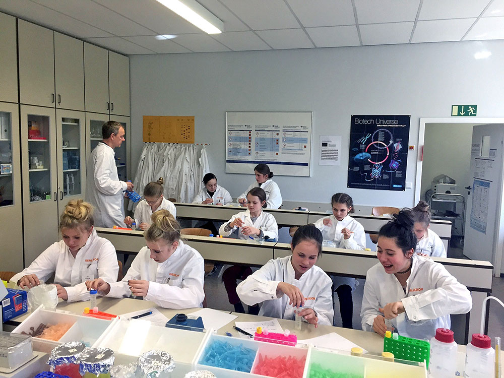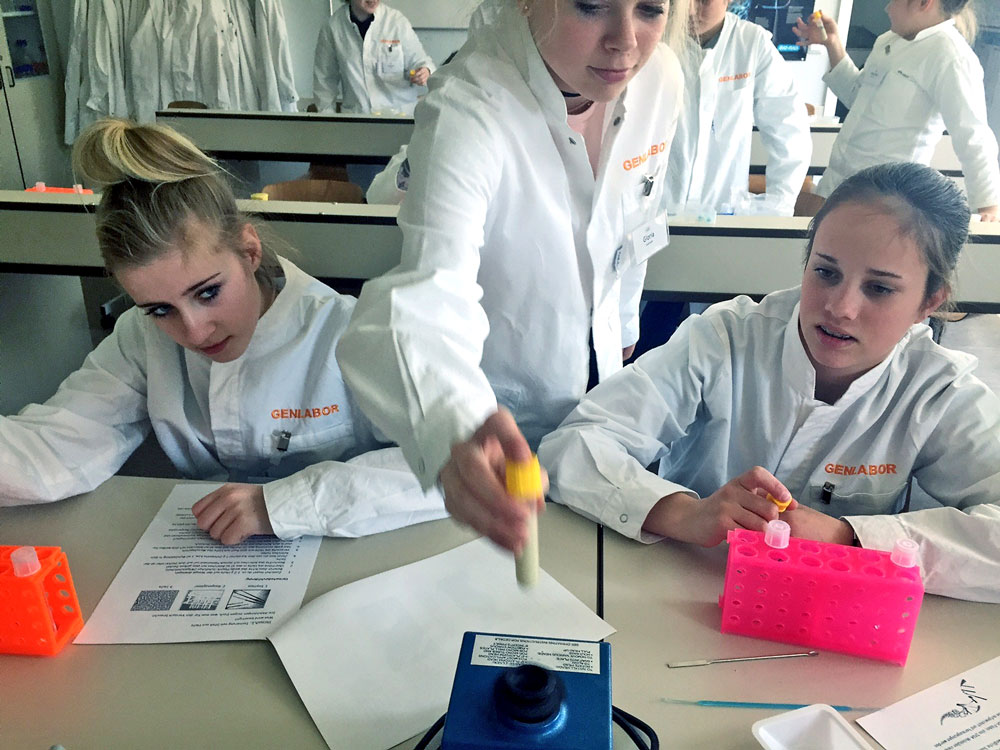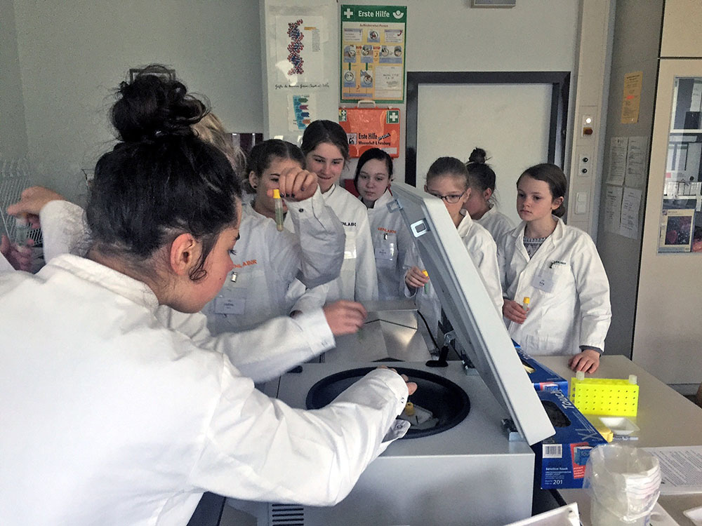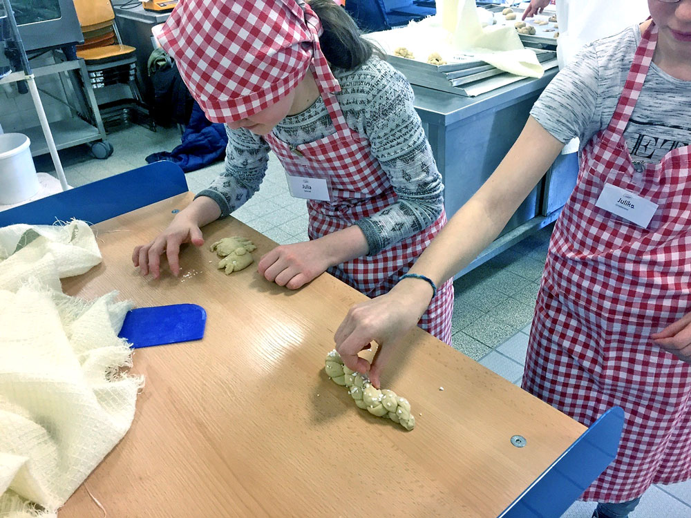 Zwölf wissbegierige Schülerinnen im Alter von 10 bis 13 Jahren konnten in unserer Konditorei und im Genlabor in verschiedene Berufsbereiche hineinschnuppern und praktische Erfahrungen sammeln. In der Konditorei wurde unter fachkundiger Anleitung Hefeteig angesetzt und daraus tolle Kunstwerke gebacken, die am Ende des Tages nicht nur bestaunt, sondern auch als leckeres Erfolgserlebnis mit nach Hause genommen wurden.