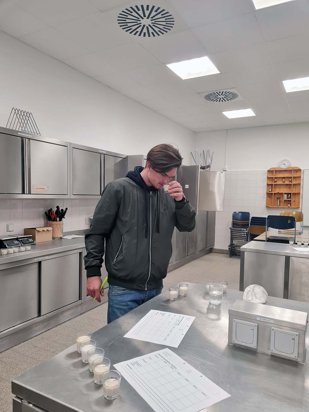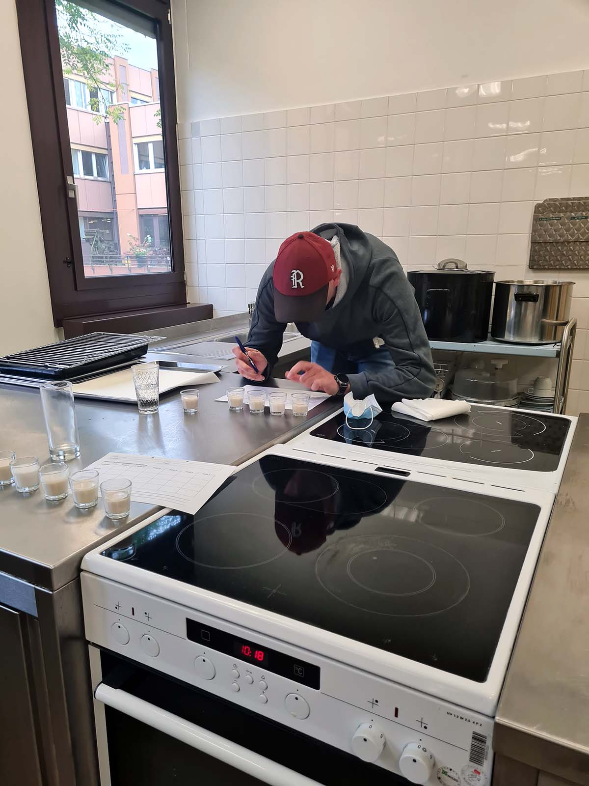 Die Studierenden des neuen Techniker-Jahrgangs waren Ende September im Fach Rohstoffkunde zu einer Verkostung verschiedener pflanzlicher Milchalternativen eingeladen. Hierzu erhielten sie, unter Einhaltung von Sicherheitsabstand und guter Durchlüftung, fünf verschiedene Proben zur geschmacklichen Verkostung.