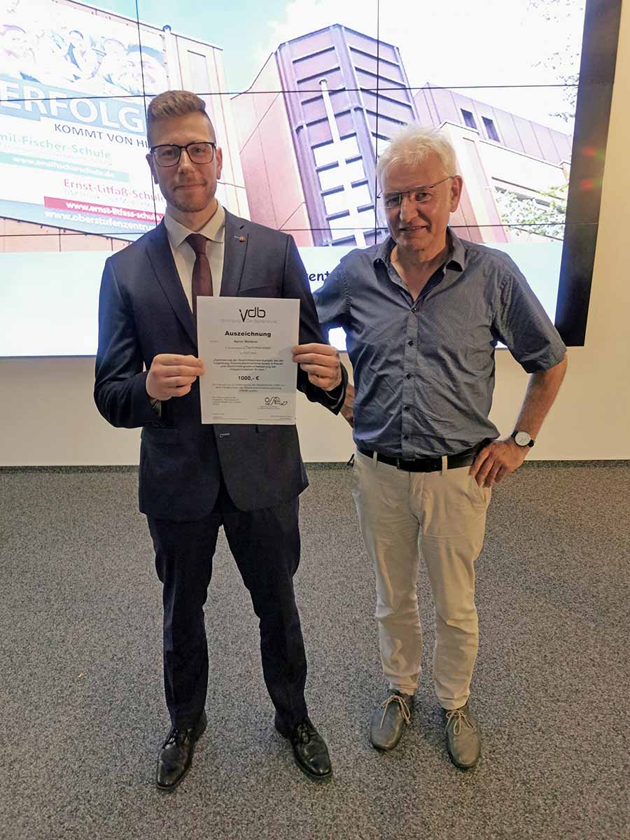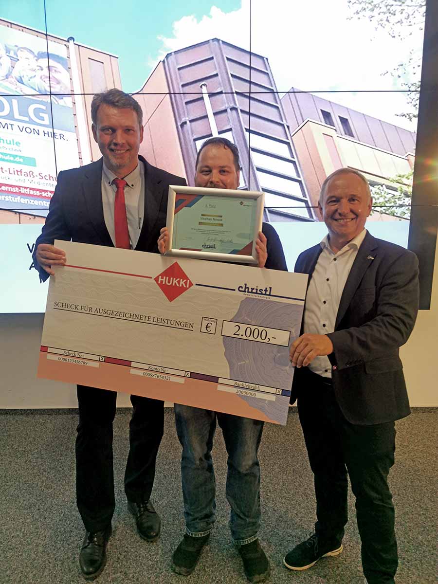 Im Anschluss wurde der mit 2000 Euro dotierte Preis der Firmen Hukki und Christel für die beste Technikerarbeit an Herrn Stephan Nowak verliehen.