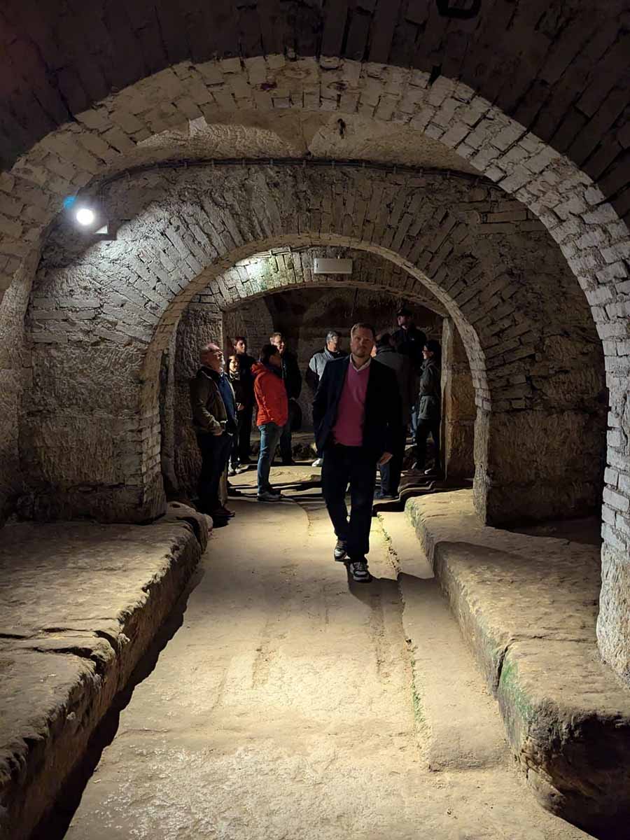 Ein geführter Rundgang mit viel Geschichte und kleinen „Geschichtchen“ aus den Felsenkellern unter Schwandorf brachte uns am Nachmittag viele Informationen zu den Zeiten vor Erfindung des Kühlschrankes, besonders in Bezug auf das sehr geschätzte Grundnahrungsmittel Bier. Anschließend galt es, die größte begehbare Holzkugel der Welt zu besichtigten und auch zu erklimmen.