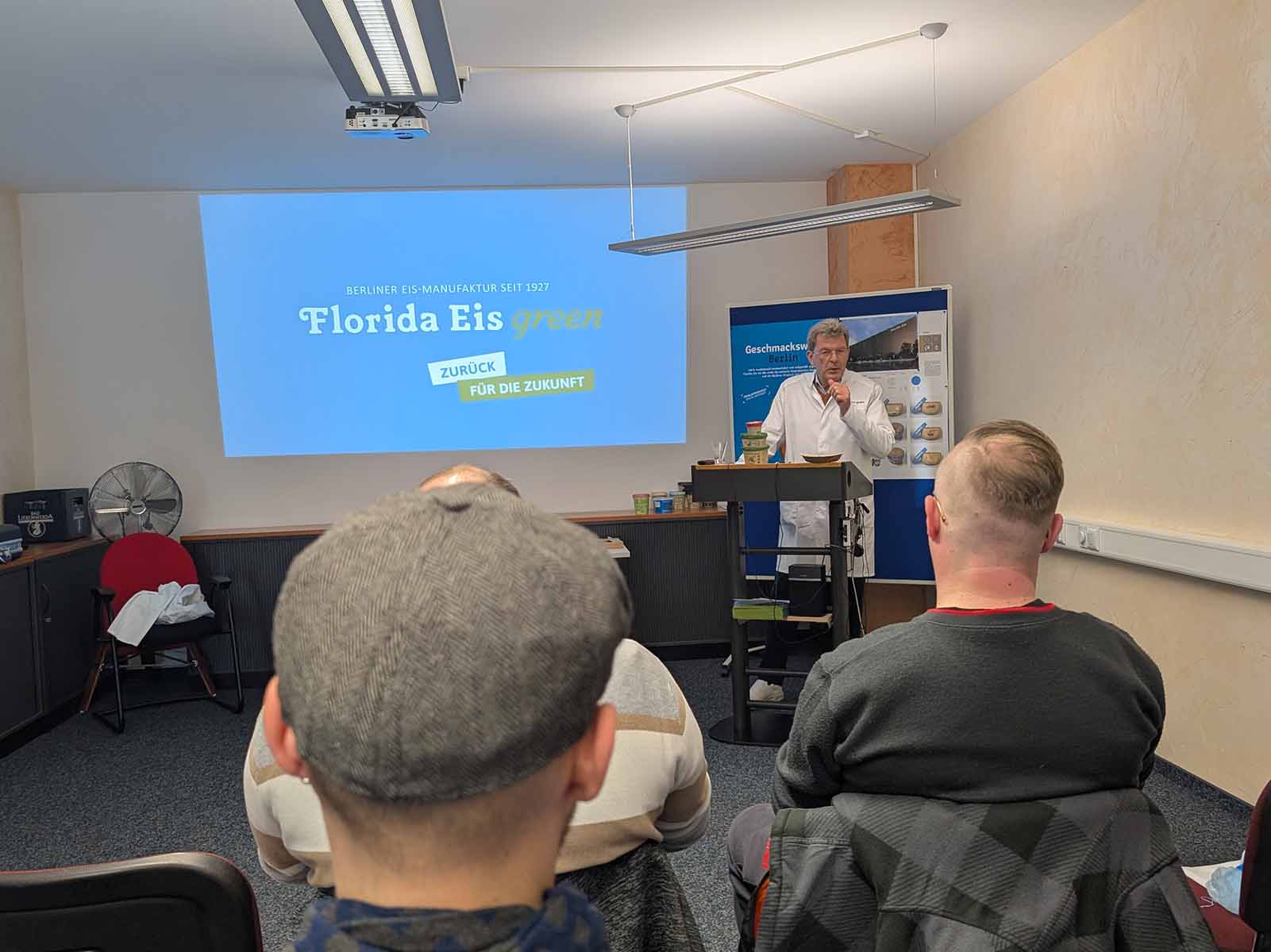 Mit viel Zeit der Vorfreude war es am Dienstag, den 18. März 2025, soweit: Der Geschäftsführer der Firma Florida Eis, Herr Olaf Höhn, empfing uns höchstpersönlich in Berlin-Spandau. Die gesamte Fachschule und damit jahrgangs- und schwerpunktübergreifend, begleitet von vier Lehrkräften und einer Lehramtspraktikantin, besuchte den Hauptsitz von Florida Eis.