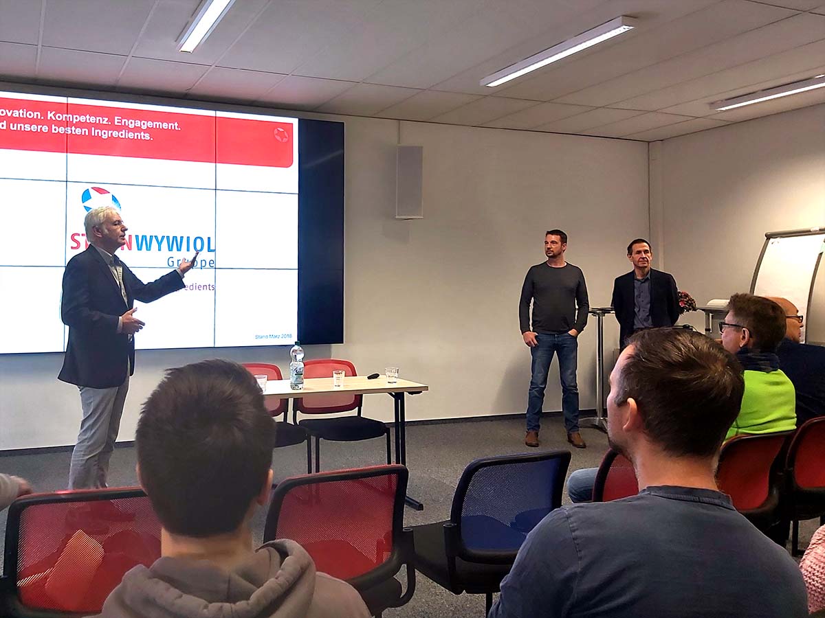 Am 13.12.2019 hat sich das Unternehmen Stern-Wywiol-Gruppe in der Fachschule für Lebensmitteltechnik vorgestellt. Unser ehemaliger Schüler Roman Gradert, der mittlerweile Betriebsleiter in Lateinamerika ist, und sein Chef Dr. Lutz Popper sind extra zu diesem Anlass angereist.
