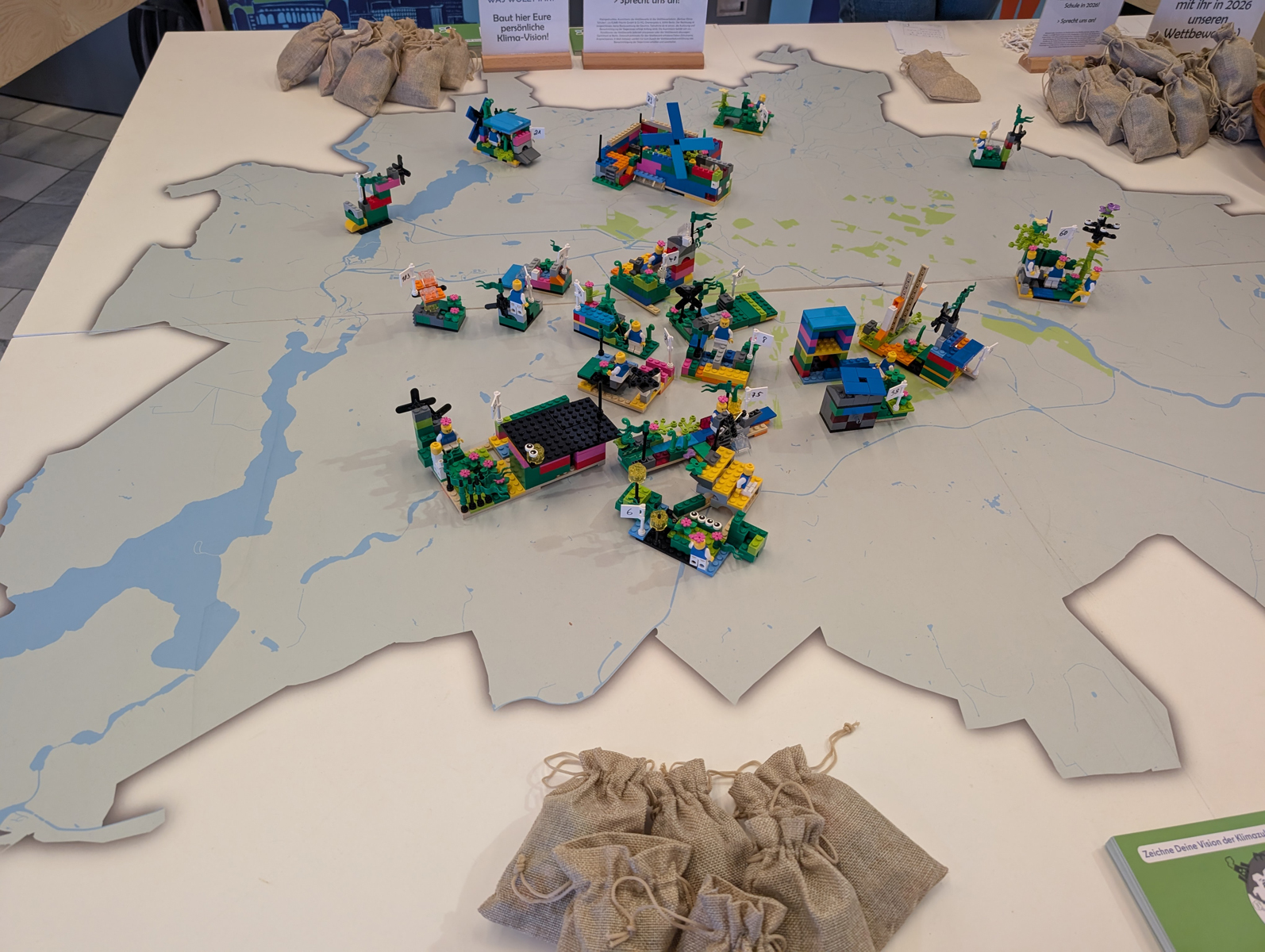Bei der Klimazukunftskonferenz ging es den ganzen Tag, um Klimabildung und der Förderung des Bewusstseins der Notwendigkeit hier umzudenken und neue Wege zu gehen. Besonders inspirierend war hierbei der große Anteil an klimainteressierten Jugendlichen und dem damit im Raum herrschenden Interesse bei den meisten Anwesenden. Überall standen verschiedene Möglichkeiten bereit, um sich auf kleinstem Raum mit absolut Vielfältigen Aspekten des Klimaschutzes zu beschäftigen: von sozialen Aspekten, über Ackerflächen und deren Bedeutung, über virtuelles Wasser bis hin zu den SDG’s –für jeden war etwas dabei.