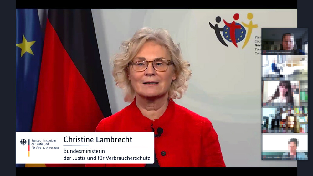 Zum Auftakt der offiziellen Preisverleihung wurde eine Videoaufzeichnung der Bundesministerin der Justiz und für Verbraucherschutz gezeigt, die auch uns Lehrern in dieser für uns nicht einfachen Zeit ein Lob aussprach, sich trotzdem auch dem Thema Verbraucherschutz so intensiv zu widmen.