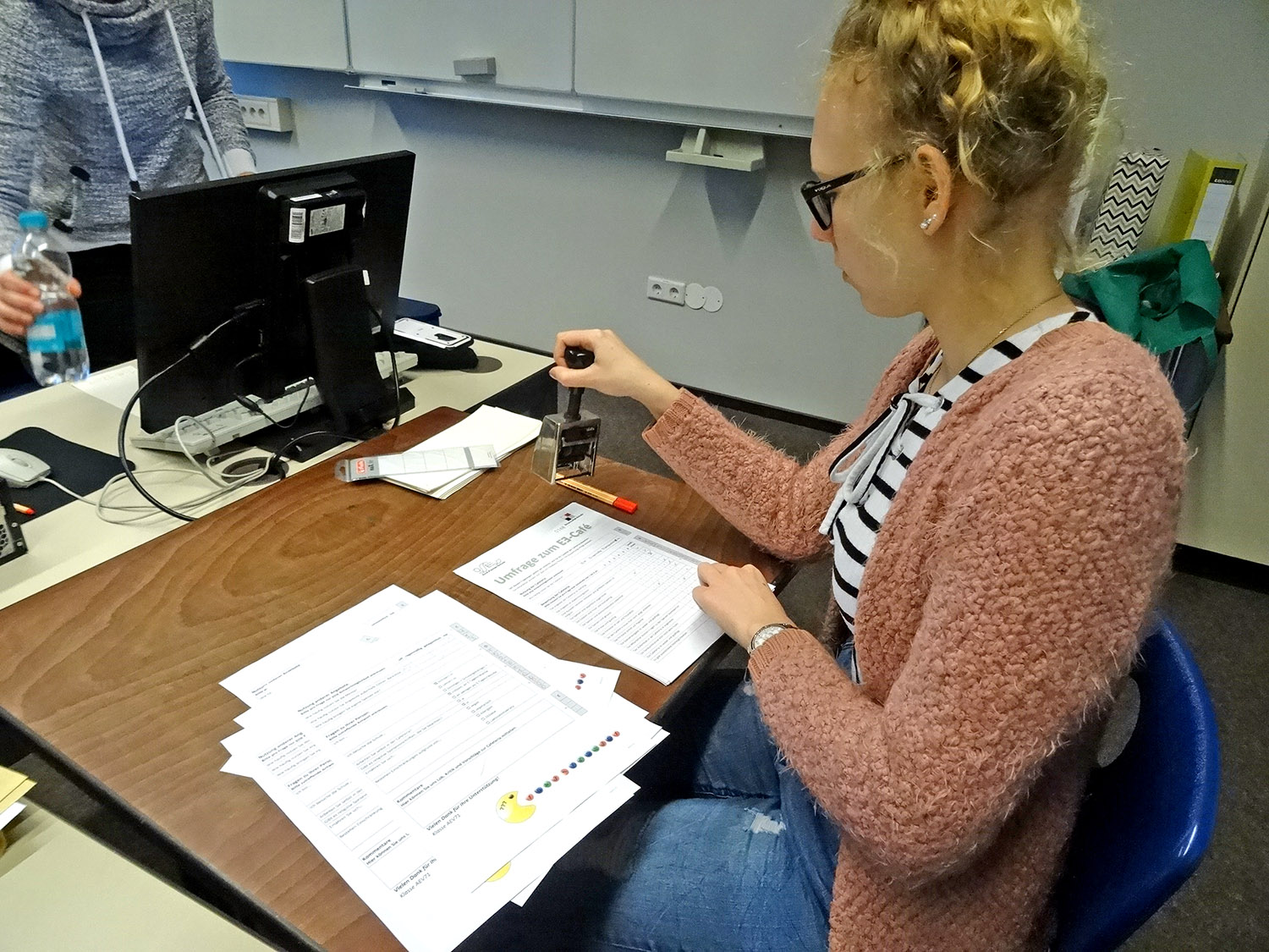 Die Datenerfassung vom Fragebogen war recht einfach und ging schnell, da wir vorher eine Maske erstellt haben, in die wir einfach alle Antworten vom Fragebogen eingeben mussten. Die erfassten Fragebögen haben wir in einem Ordner sortiert und sicher verwahrt. Am meisten hat mir dieser Arbeitsschritt gefallen. Liana