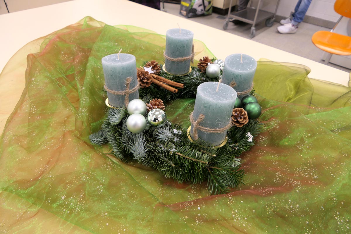 Die Weihnachtszeit ist eingeläutet und wir, drei Klassen der Assistent(inn)en für Ernährung und Versorgung und der Hauswirtschafter/-innen, haben beschlossen, die Adventsdekoration im Rahmen unserer Berufsausbildung selbst zu gestalten.