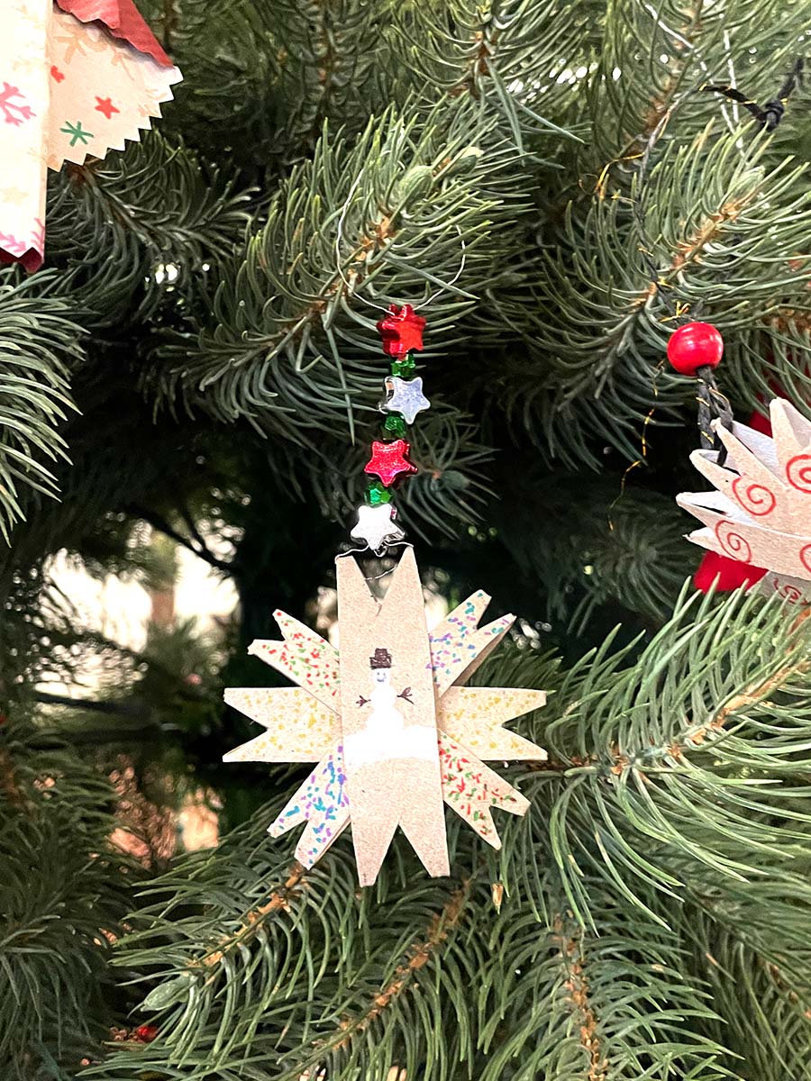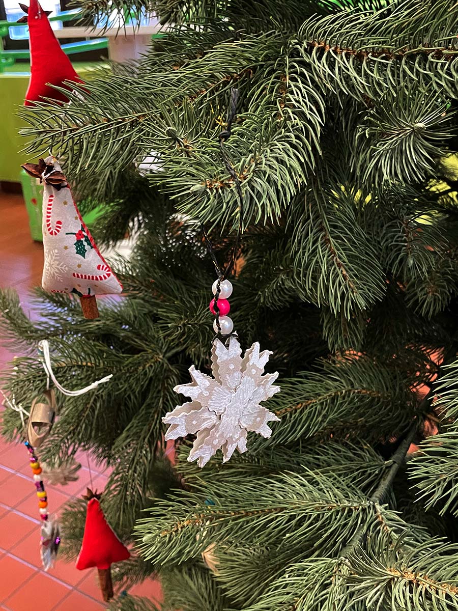 Das gesamte Kollegium sammelte eifrig Papprollen, so dass die Schüler und Schülerinnen sehr viele fantasievolle Sterne basteln konnten. Die Sterne sind am Weihnachtsbaum im Eingangsbereich der Schule zu bewundern.