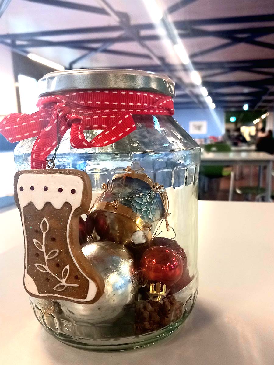 Auch in diesem Jahr wurde die Emil-Fischer-Schule von den Klassen der Berufsfachschule (AEV), Berufsschule (DHW01) und den Willkommensklassen (WKK) adventlich dekoriert. Upcycling und Nachhaltigkeit standen dabei im Vordergrund.