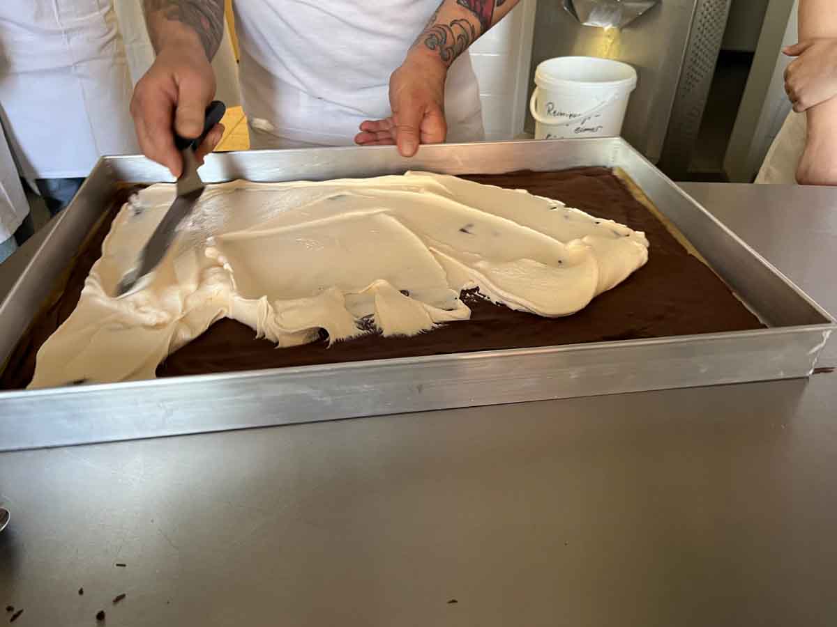 Unter der fachkundigen Anleitung von zwei Auszubildenden aus dem Bildungsgang „Lebensmitteltechnische Assistenten“ haben die Schülerinnen und Schüler Whoopie Pies hergestellt. Hierzu wurde eine gebackene Schokoladenmasse mit Vanille-Eis gefüllt und abschließend sensorisch bewertet.