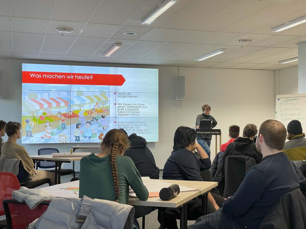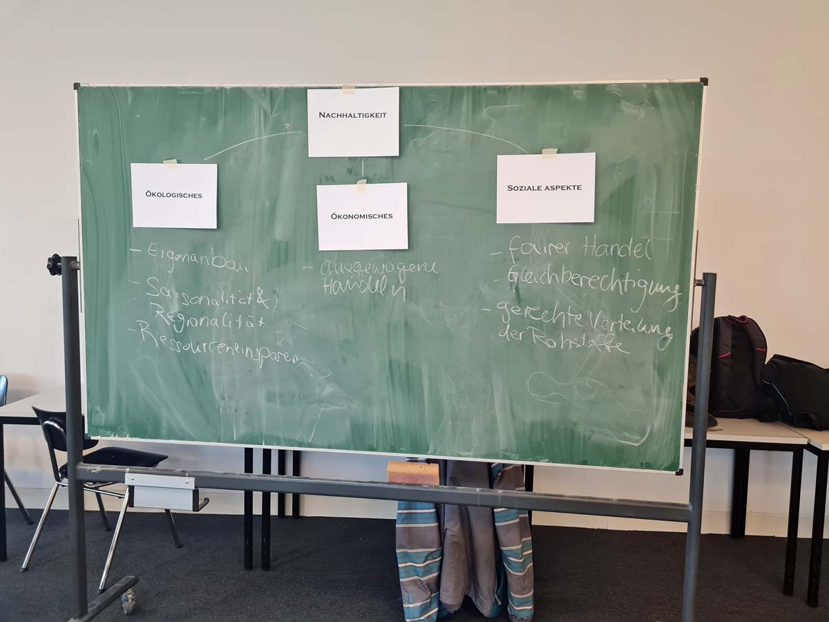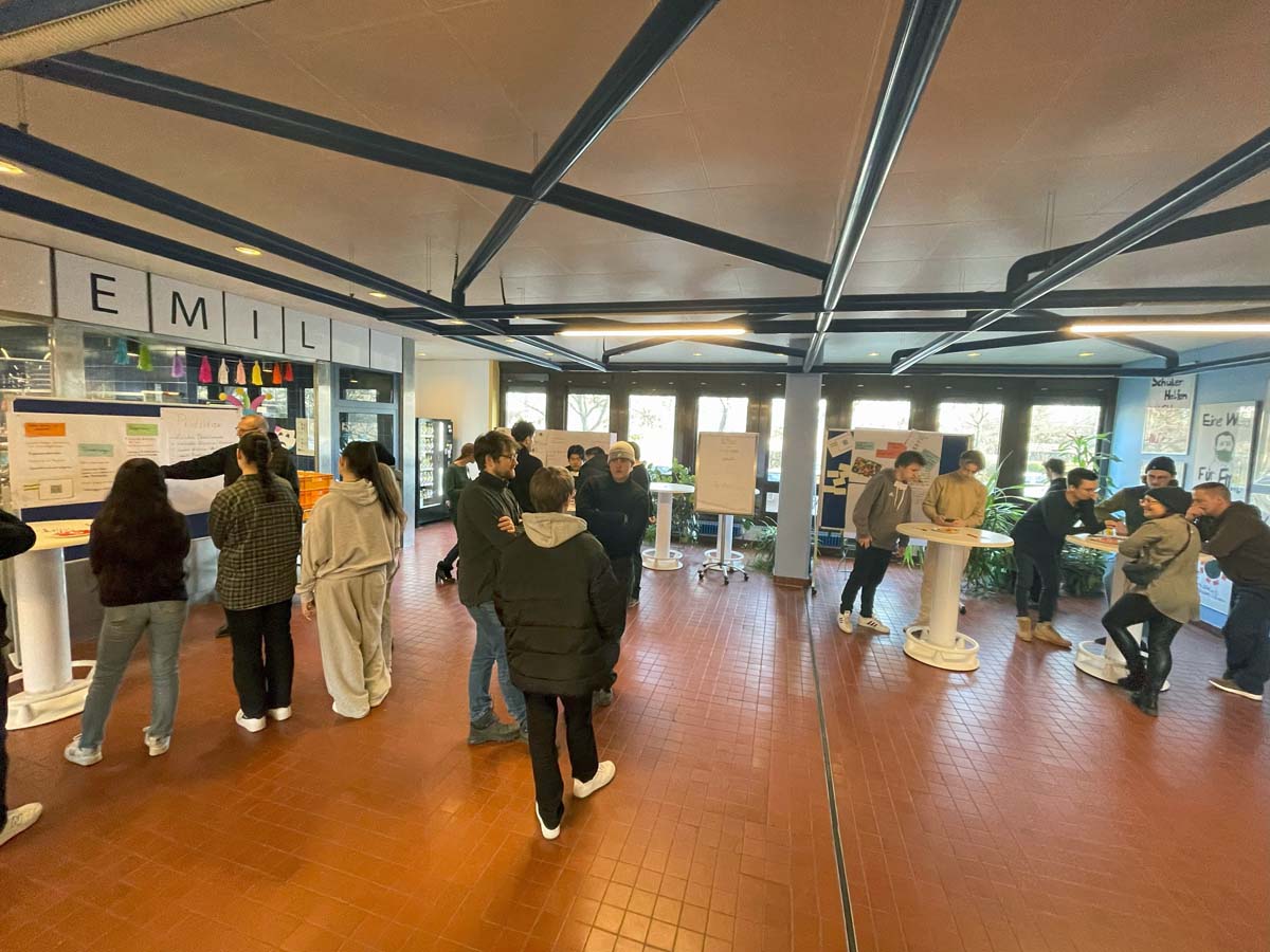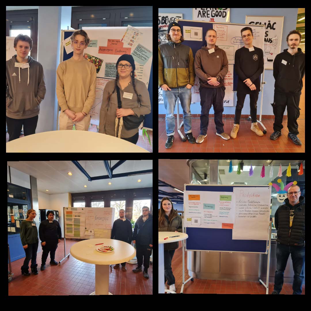 Hierzu traf der nächste Jahrgang von Lehrsamtanwärterinnen und -anwärtern der Fachrichtung Politik der Freien Universität Berlin (FU) auf Lernende aus der Fachschule und der Berufsfachschule der Emil-Fischer-Schule für einen viertägigen Workshop. Hauptthema war, Gestaltungsansätze für eine nachhaltige Mensa bzw. Cafeteria zu entwickeln und Forderungen gegenüber Politikerinnen und Politikern in einem „Speed-Date-Format“ zu diskutieren.
