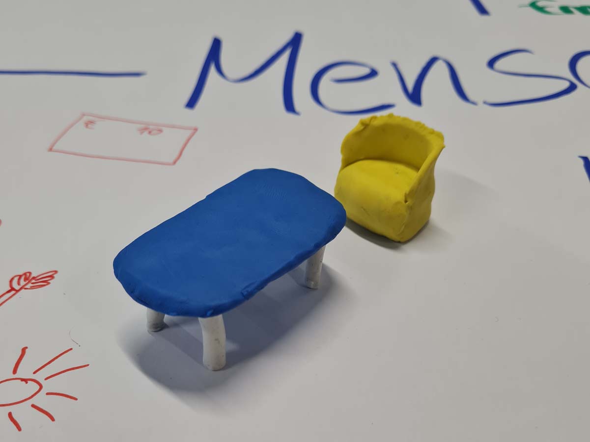 Alle Schülerinnen und Schüler konnten ihrer Kreativität freien Lauf lassen – mit Knete, Papier, Stiften und anderen Materialien – wurden die Zukunftsvisionen einer nachhaltigen Mensa visualisiert. Viele alltagstaugliche Ideen sind dabei entstanden, wie z. B. der Wunsch nach Mehrweg-Verpackungen für das Essen in der Cafeteria, und sollten vielleicht generell für alle Schulen eingeführt werden. Vor allem stachen hierbei die filigranen Knetfiguren einer Gruppe und ein kleines Gedicht zum Thema Nachhaltigkeit an der Emil-Fischer-Schule heraus.