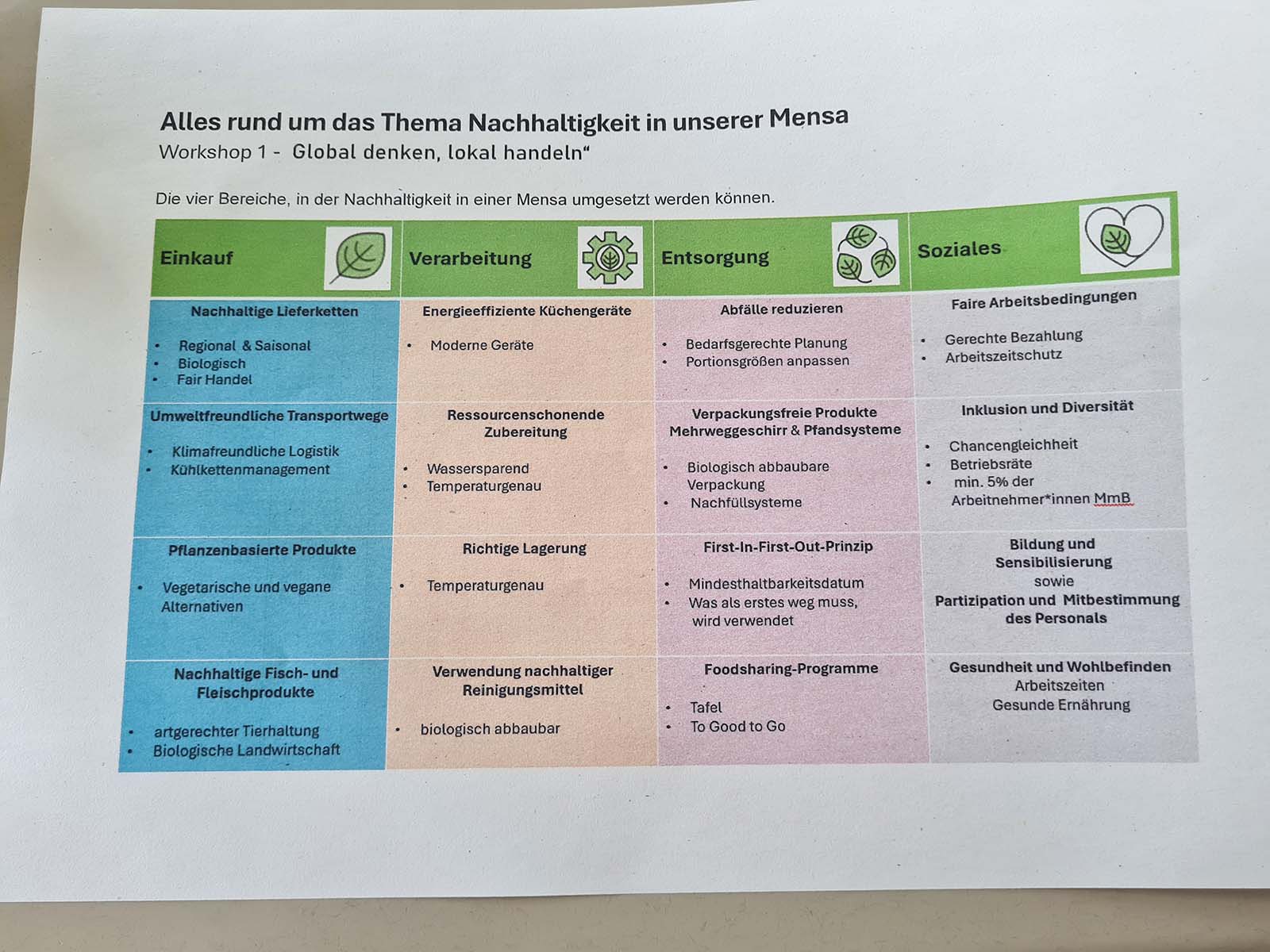 Der zweite Tag stand unter den Stichworten „Zukunftswerkstatt“ und „Markt der Möglichkeiten“. Die Schüler/-innen gestalteten Videos zu ihrer Traummensa und setzten Forderungen hinsichtlich einer nachhaltigeren Essensgestaltung in Form von Demonstrationsplakaten um. Beim Markt der Möglichkeiten gab es vier Stände – unterteilt in die Themengebiete Einkauf, Verarbeitung, Entsorgung und Soziales.