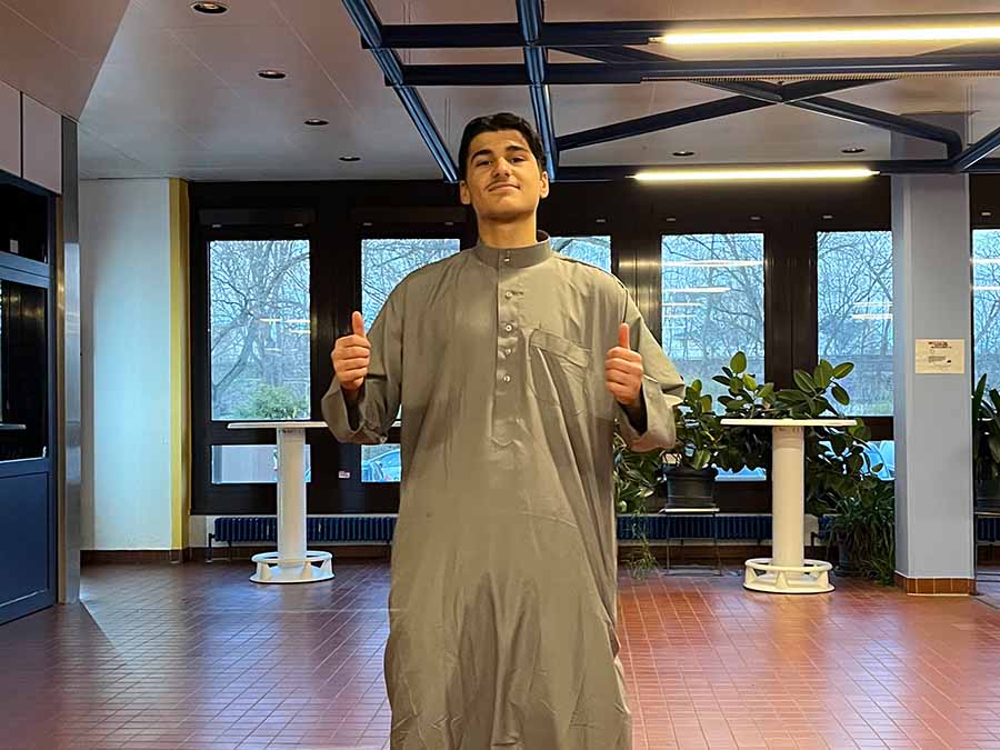 Die IBA-Klasse 407 kam in der Fastenzeit auf die Idee, als Klasse gemeinsam in der Schule das Fastenbrechen durchzuführen. Das tägliche Mahl nach Sonnenuntergang im Fastenmonat Ramadan, İfṭār genannt, wird traditionell damit begonnen, dass man eine ungerade Anzahl von Datteln isst und die Worte bismillah ausspricht, was so viel bedeutet wie 'im Namen Gottes'. Passend zur Tradition ist ein Schüler der Klasse mit Abaya erschienen, einer traditionellen arabischen Kleidung.