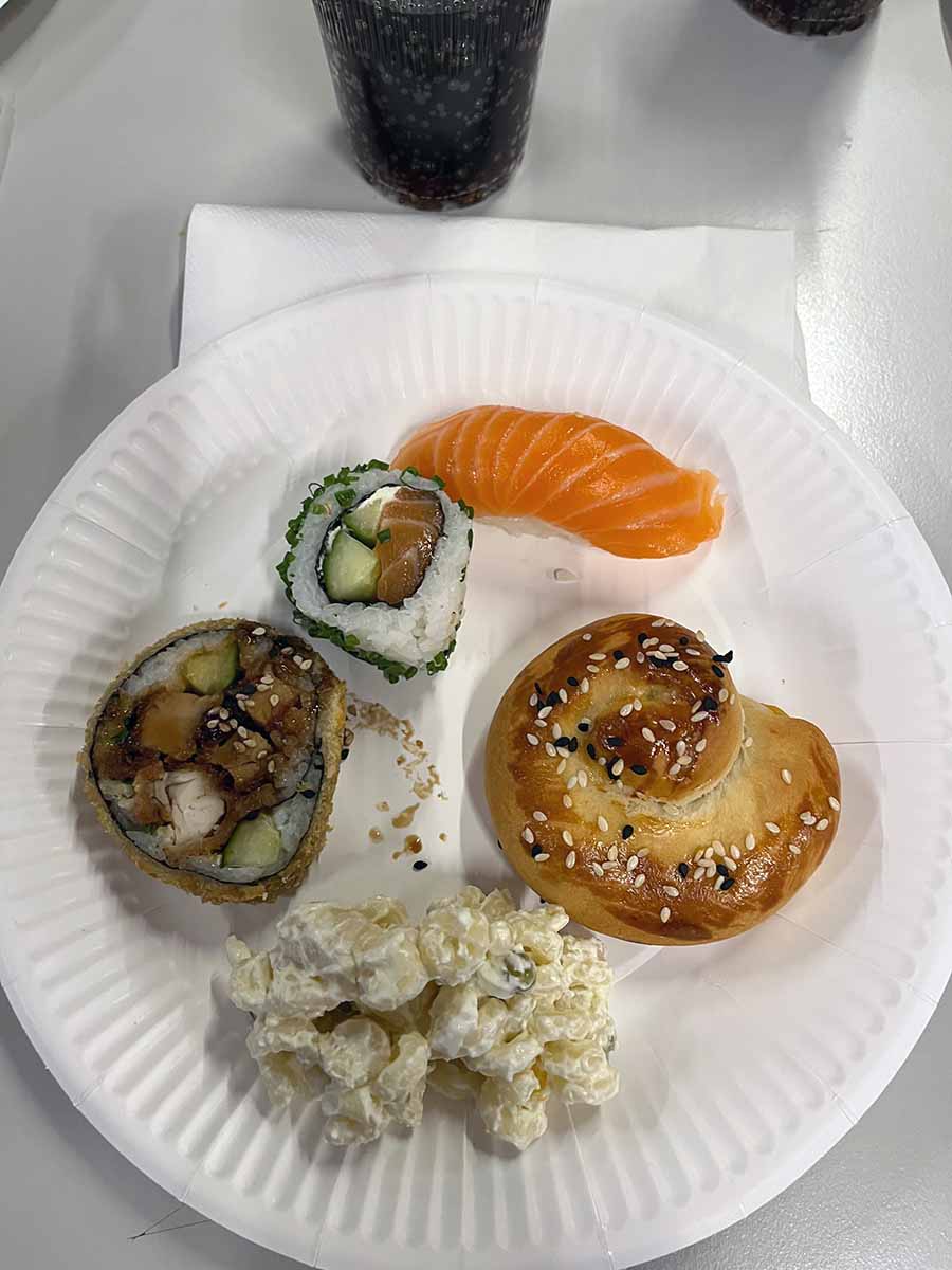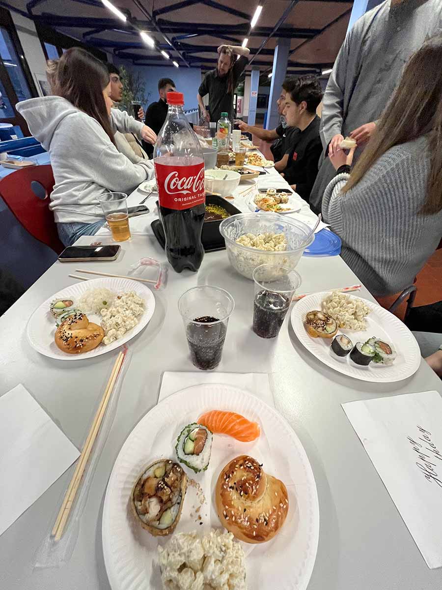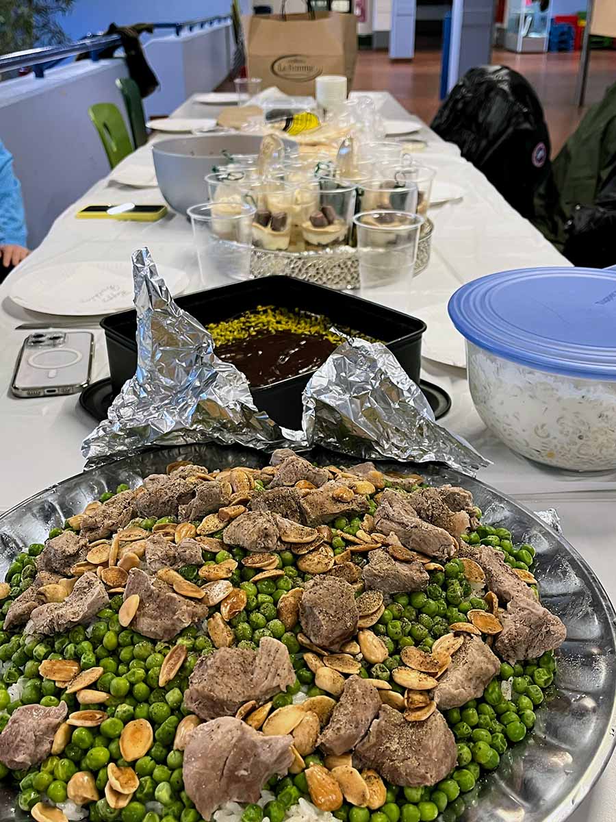Natürlich haben an diesem Abend nicht nur die muslimischen Schüler und Schülerinnen der Klasse teilgenommen, sondern es wurden alle eingeladen. Es wurde auch dazu eingeladen etwas mitzubringen und so gab es herzhafte Köstlichkeiten wie Riz Bazelia (Reis mit Erbsen und Fleisch) mit Joghurt-Dip, das typische Fladenbrot, auch Pide genannt, aber auch arabisches Brot mit verschiedenen Dips. Ein weiteres Highlight war Pogaca, türkische Teigtaschen mit Kartoffel gefüllt.