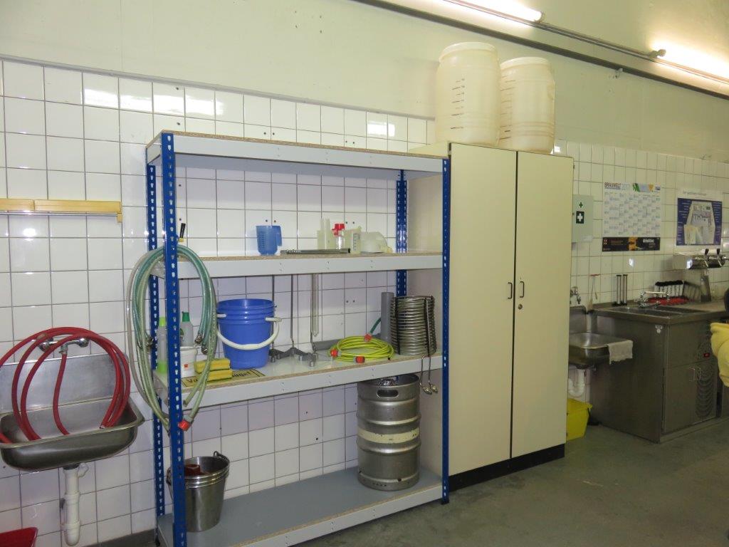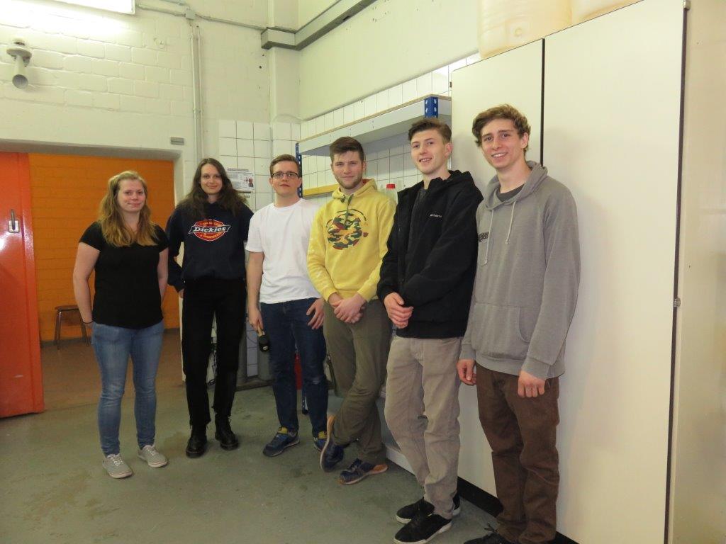 Viele tatkräftige Hände des 2. Ausbildungsjahres der Brauer/-innen sorgten unter fachkundiger Anleitung des Kollegen Sasse dafür, dass der Braukeller nun übersichtlicher geworden ist und darüber hinaus mehr Platz zur Verfügung steht. Die alten Regale und die Spülmaschine verschwanden, dafür wurden ein neues Regal installiert, ein weiterer Schrank aufgestellt und eine neue CO2-Leitung gelegt.