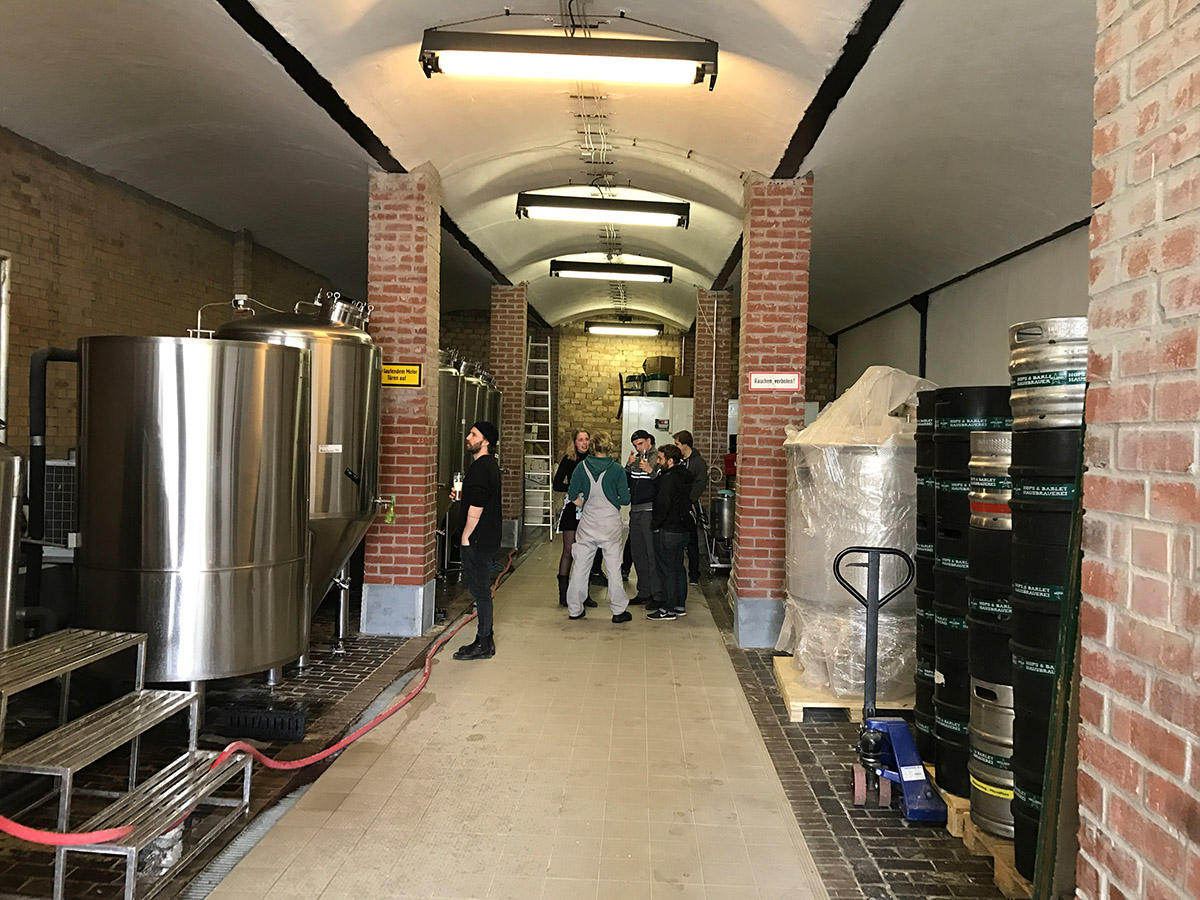 Anschließend ging es weiter nach Friedrichsfelde-Ost zur neuen Braustätte „Berliner Bierfabrik“. Den Abschluss des Tages bildete ein Besuch der Braustätte von „Hops & Barley“, wo wir von unserer ehemaligen Azubine Karin Naß herzlich empfangen wurden. Sie braut dort inzwischen hauptberuflich Bier für das „Hops & Barley“.