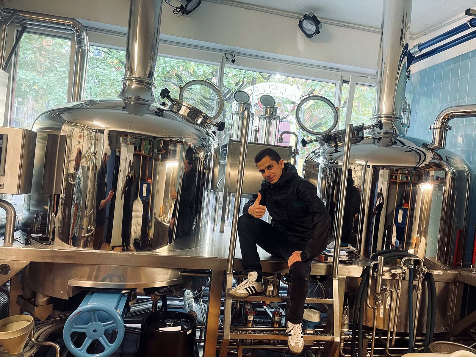 Unsere dritte Exkursion mit dem 3. Ausbildungsjahr Brauer/-in und Mälzer/-in führte uns nun, nach dem Besuch zweier mittelständischer Unternehmen während der letzten Wochen, in die kleine, aber feine Braustätte Eschenbräu im Berliner Wedding. Die spontane Reaktion unseres Azubis Manuel Haza Santos (siehe Bild) spricht für sich.