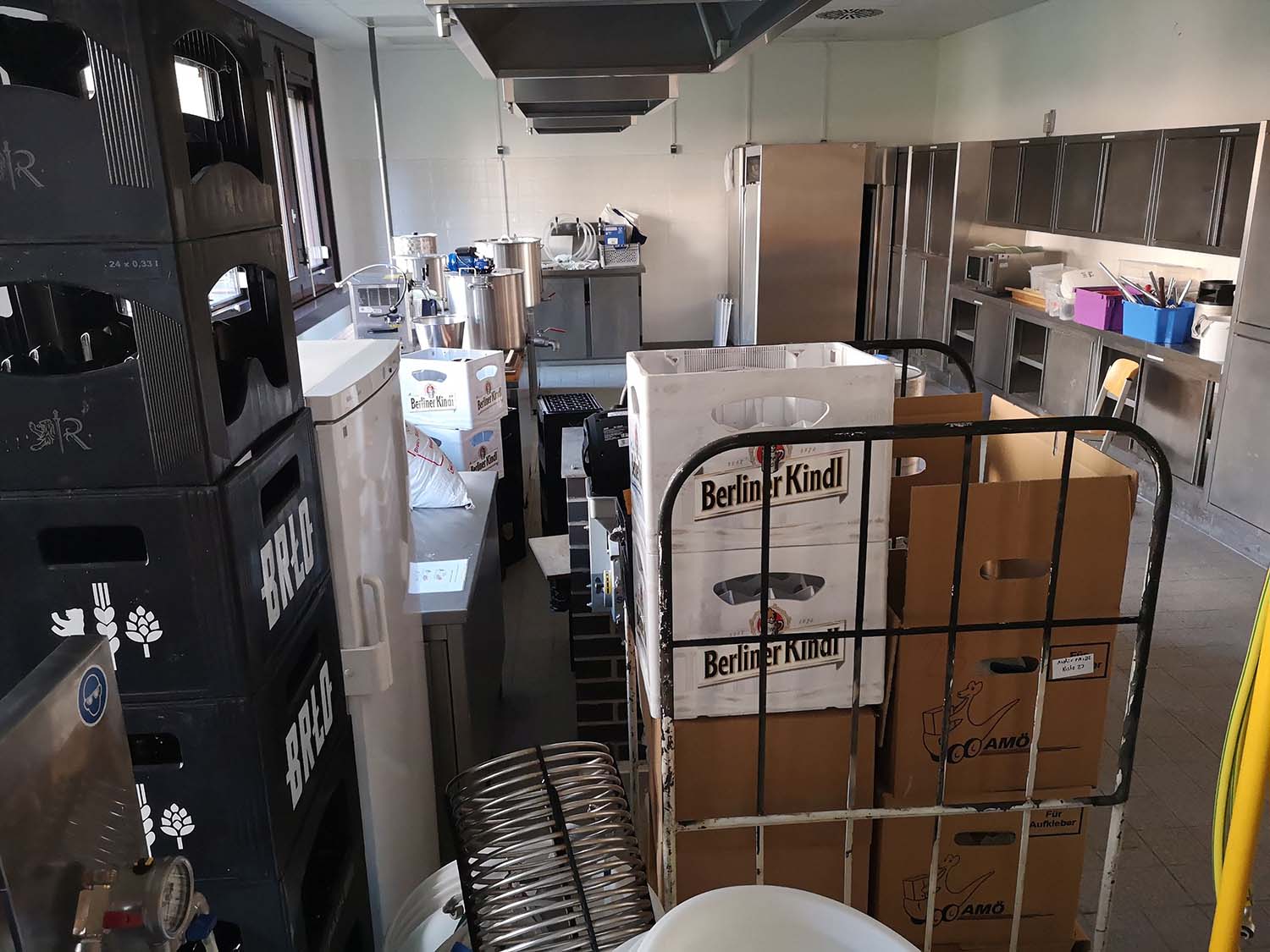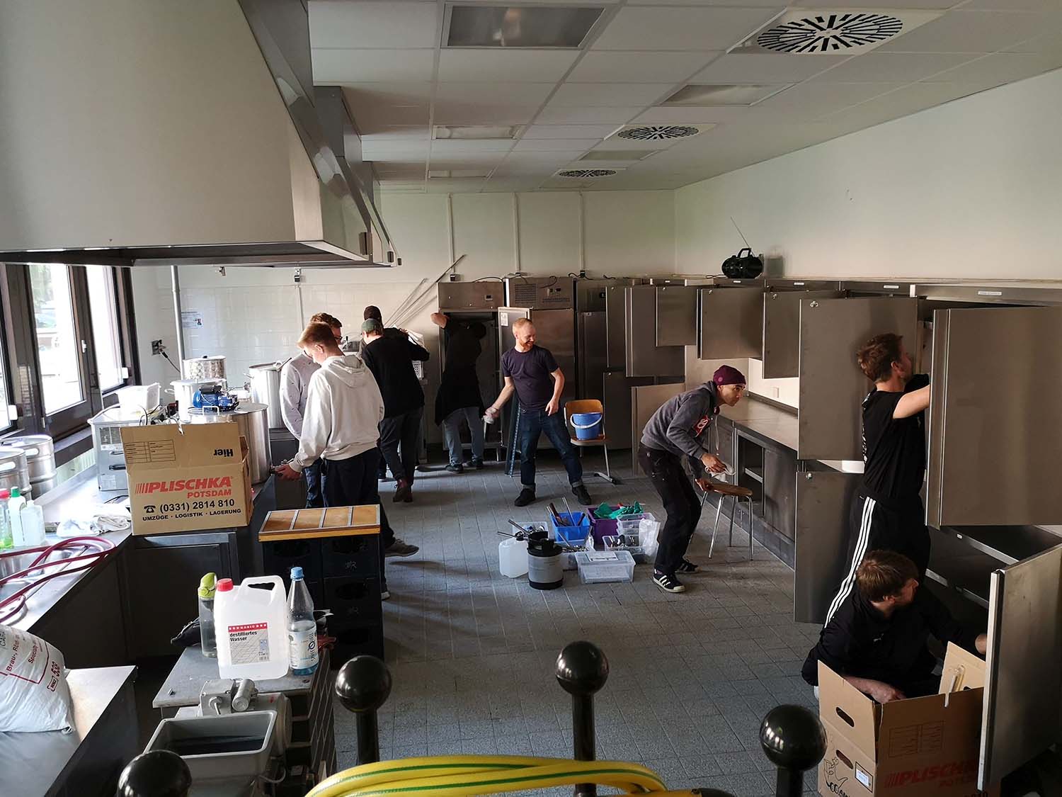 Eine fast 20-jährige Ära endet und eine neue beginnt: Die Brauer/-innen ziehen mit ihrem Equipment in eine ehemalige Lehrküche im Erdgeschoss.