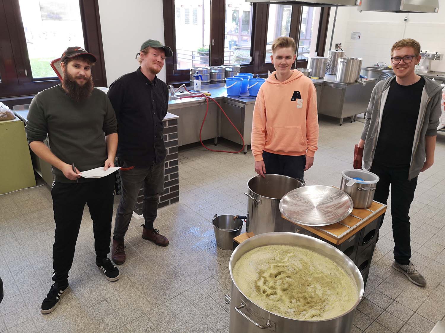 Verbunden mit viel Zuversicht schauen wir in die Zukunft: Tageslicht, endlich Wasserabläufe im Boden, Rauchabzüge an der Decke und Gasanschluss für einen Kocher. Außerdem ermöglichen die großzügigeren Räumlichkeiten den Unterricht in Teilgruppen in der Brauerei.