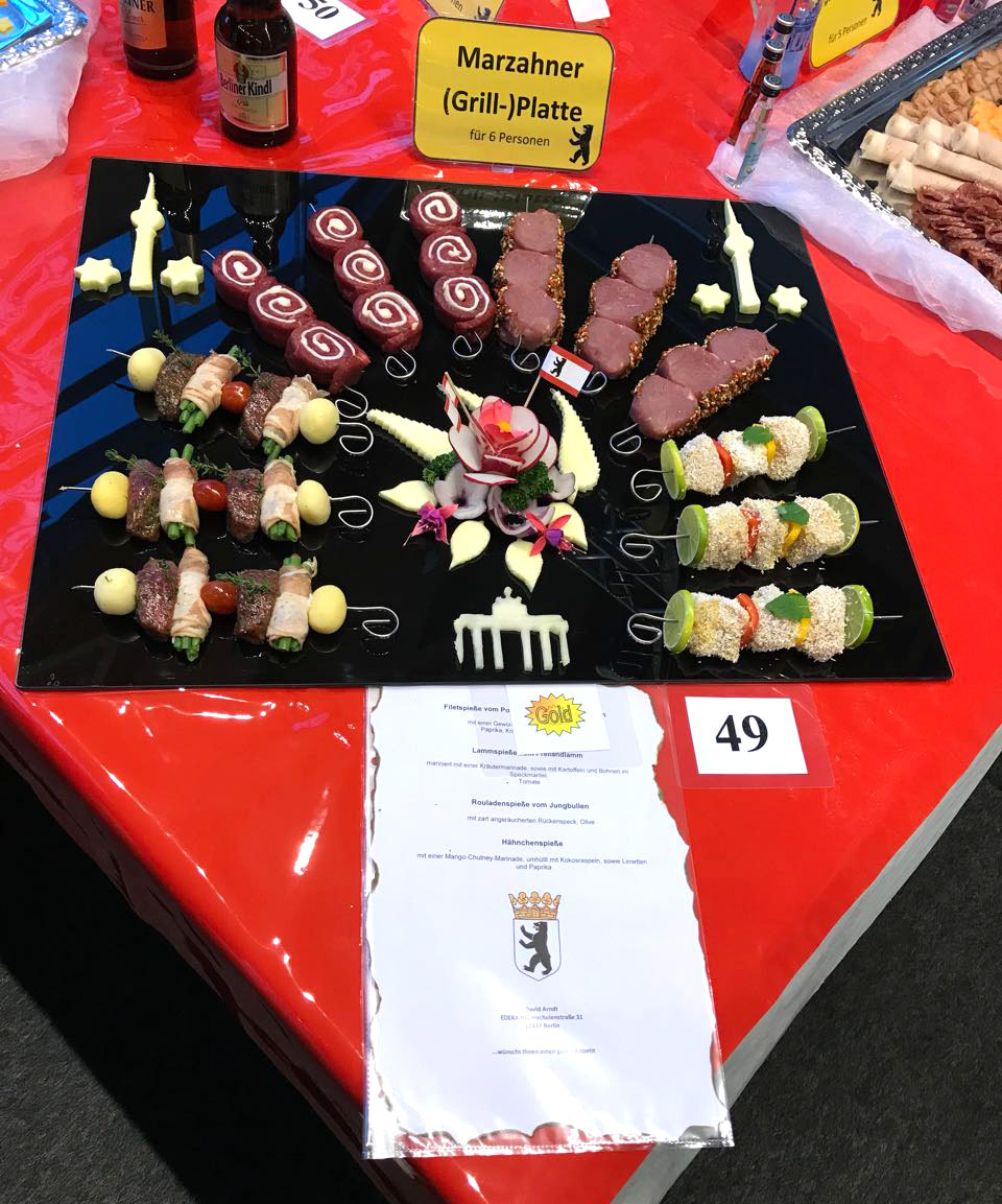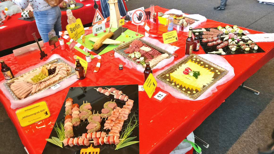 Berlin kann alles – außer eben einen Flughafen bauen. Selbstironisch und mit kreativen Produkten rund um Berlin präsentierten wir uns auf der GastRo in Rostock und konnten tolle Ergebnisse erzielen. Sechs Schüler und Schülerinnen unserer Fleischereifachverkäufer- und Fleischerklassen aus dem zweiten und dritten Ausbildungsjahr zeigten unter großem Engagement ihr Können auf dem Gebiet der Gestaltung von Fleisch-, Schinken-, Braten- sowie Käseplatten.