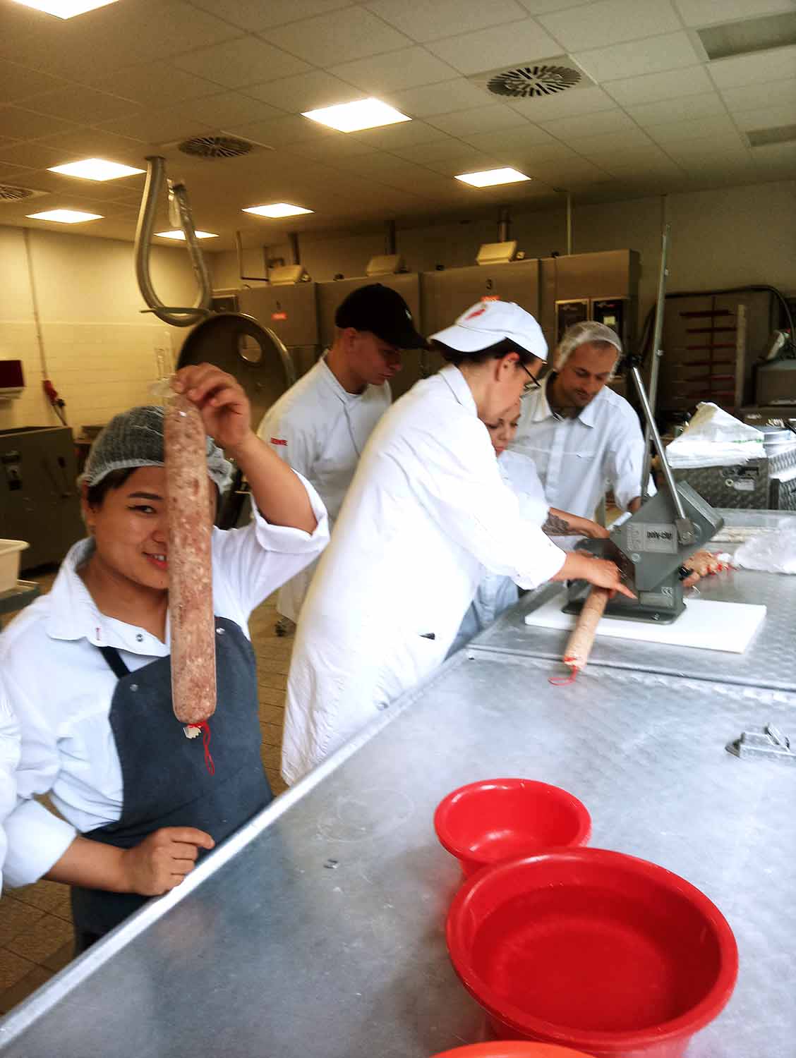 Mit großem Engagement produzierten wir zwei Sorten Wurst aus unterschiedlichen Kategorien. Zuerst informierten wir uns über die Rohstoffe und Gewürze, die wir verarbeiten wollen.