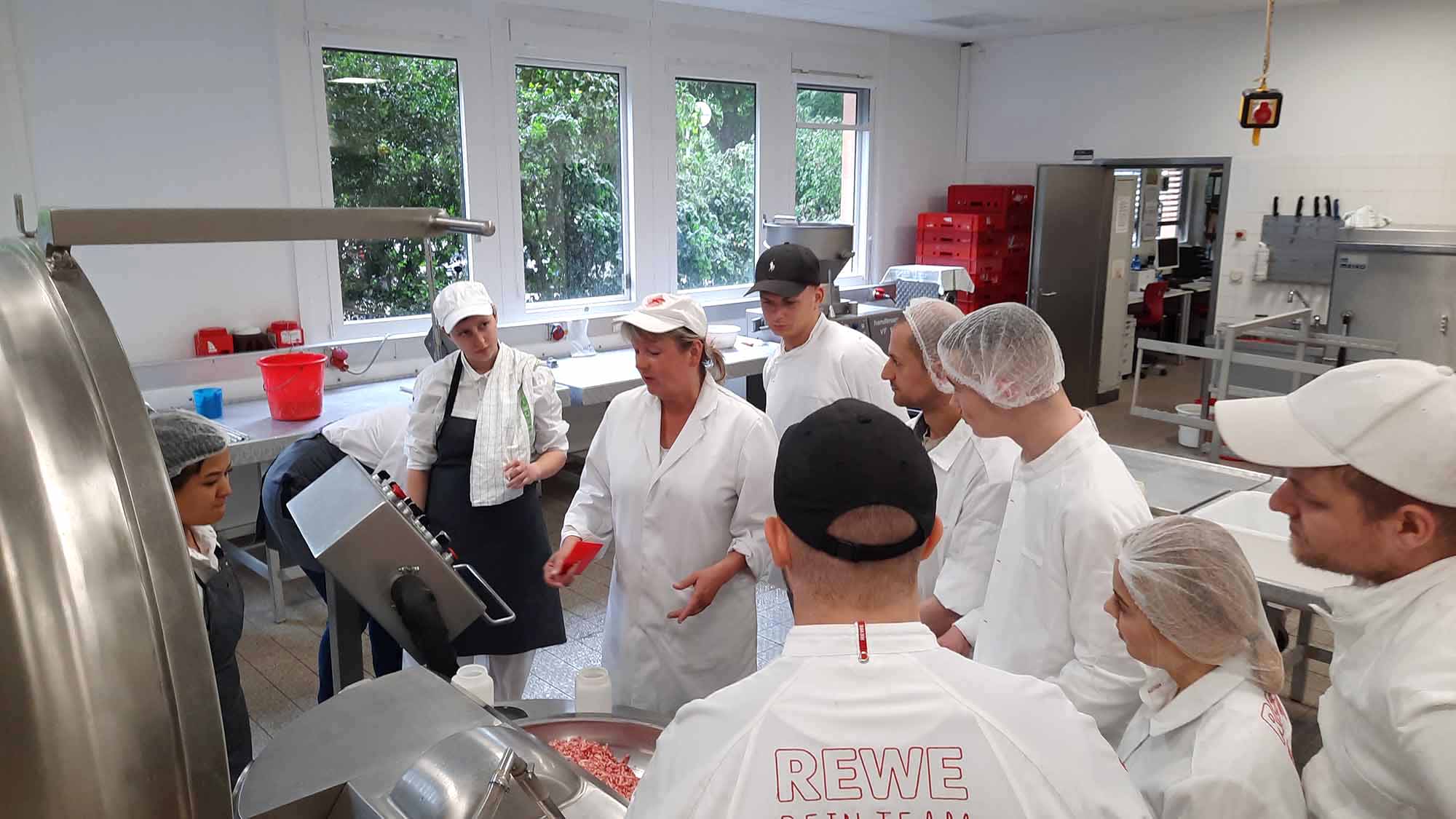 Im Juni 2022 führten die Schüler und Schülerinnen des 2. Ausbildungsjahres der Klasse DVF01 (Fachverkauf Fleisch), im Rahmen des Lernfeldes 2.2 „Waren kundenorientiert verkaufen“, einen Praxistag in unserer hauseigenen Fleischwerkstatt durch.